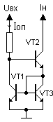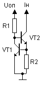 Выходной ток равен: Iн=0.66/R2 ;При токах нагрузки более 3 ма в качестве VT2 нужно применять составной транзистор. Недостаток - низкая температурная стабильность.