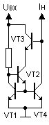 Имеет повышенную точность за счёт добавления базового тока транзистора VT3 (равного базовому току VT2) к выходному току транзистора VT4.