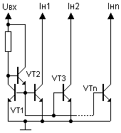 Эта схема требует высокой идентичности VT1, VT3, VT4...VTn. Недостаток - такого отражателя тока - сравнительно малое выходное сопротивление источников тока.