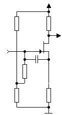 В отличие от каскада с ОЭ нелинейные искажения значительно меньше, поскольку напряжение отсечки Uотс=1..5В намного больше, чем температурный потенциал fт=25мВ биполярных транзисторов. Линейная областьвходных напряжений значительно шире и сильно зависит от выбора рабочей точки Iсп/Iсmах , где Iсп - ток стока покоя, I сmах - максимальный ток стока.
