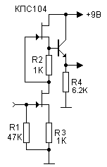 За счёт применения Rэ динамический диапазон такой схемы выше, чем у каскада с компенсационным смещением на согласованном транзисторе.