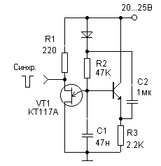 Введение резистора R1 позволяет использовать базу2 для синхронизации выходного напряжения.