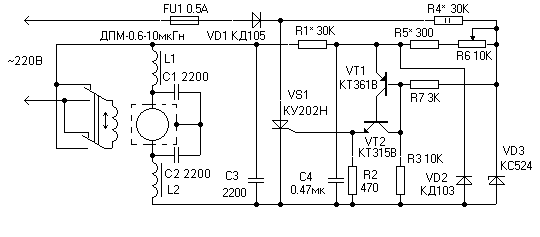 Постоянная времени цепи R4C1 выбрана равной примерно 10мс.
