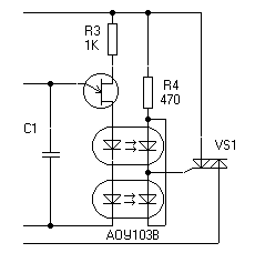 В данном регуляторе применена обратная связь по току с помощью резистора R7. В качестве импульсного трансформатора можно применить МИТ-4 или выполнить его на магнитопроводе типоразмера К16х10х4.5 из феррита М2000НМ. Обмотки содержат по 100 витков провода ПЭЛШО 0.12. Возможный вариант замены МИТ-4 двумя оптопарами показан на этом рисунке:
